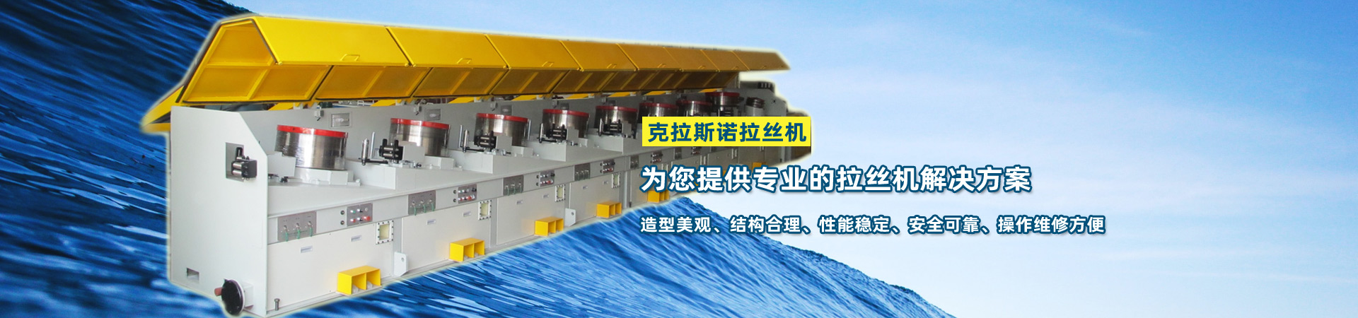 公司主要產品有:直進式拉絲機系列、水箱式拉絲機系列、倒立式拉絲機系列、快速滑輪式拉絲機系列、倒立式收線機組、盤條預處理生產線以及象鼻式卸線機、工字輪收線機、軋尖機、吊線機等輔機系列產品。公司的所有設備技術先進,實用性強,特別是倒立式拉絲機為臺灣技術,深受客戶好評。適用的范圍有低、中、高碳素鋼絲、輪胎鋼絲、不銹鋼絲、簾線鋼絲、膠管鋼絲、焊絲、電線電纜用銅絲、鋁絲、異型鋼絲等等。
